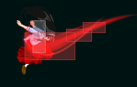 A version starts out in front, but then bends upwards. Very awkward to use offensively, but it’s very potent when used from air backdash to create space or tiger knee’d from a back jump.